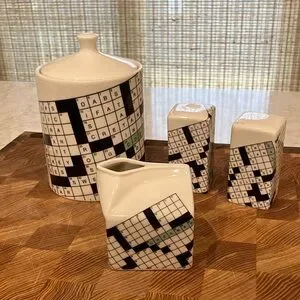 NYT Crossword Puzzle Coffee canister ceramic covered jar Fishs Eddy