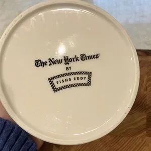 Fishs Eddy The New York Times ceramic coffee canister in like new condition. It’s about 7.5 “ tall including the lid. Check out the last picture here, I have salt and pepper, shakers, and a cream creamer for sale as well in separate listings.