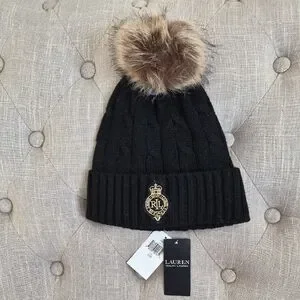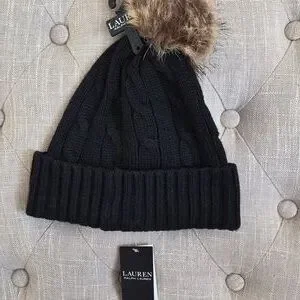 Ralph Lauren Black Knit Beanie Hat