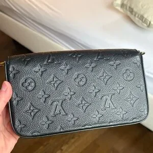 Beautiful black Louis Vuitton Pochette. Purchased in 2019, does not come with inserts or gold chain. Minor scratches on front button closure. Hardware is otherwise in like new condition. Minor makeup spotting inside. Exterior is perfect.