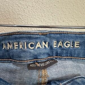American Eagle AEO Super Hi-Rise Flare Next Level Stretch Medium Wash Jeans Women’s Sz 18. Excellent condition. Clean and comes from smoke free home.