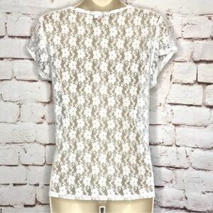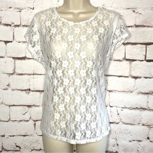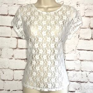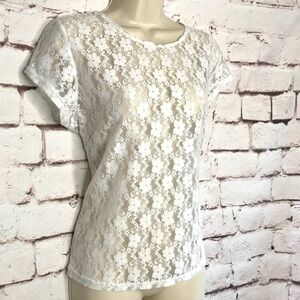 CAMELEON White lace sheer cap sleeve blouse Size Medium Large