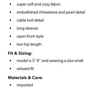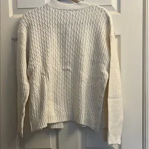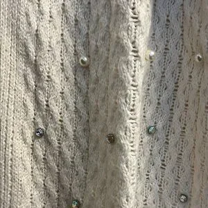 This elegant pearl and rhinestone cream cable knit sweater offers a cozy and stylish look, perfect for any occasion. Gorgeous!