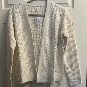Maurice’s Womens Cream Rhinestone Embellished Cardigan Sweater New XSmall