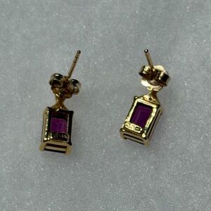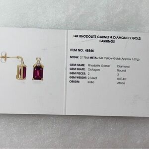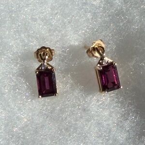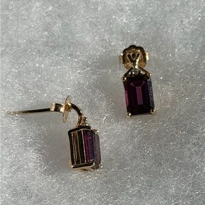 14K Rhodolite Garnet & Diamond Yellow Gold Earrings- Excellent Condition
