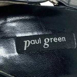 Paul Green Desire Black Leather Cross Ankle Strap Pointed-Toe Heels - Size 8.5 (AU 6). Leather upper, lining, padded insole, and sole. Leather adjustable cross-ankle strap with Velcro. Made in Austria.