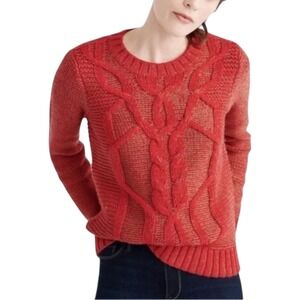 Abercrombie & Fitch Womens Red Cable Knit Fisherman Chunky Sweater Crew Neck M