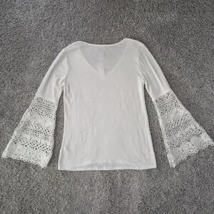 NWT White House Black Market Crochet Bell Sleeves Women's shirt size Large
