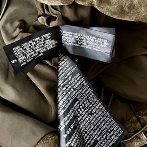 Point collar at neckline … collar can be turned up with a snap-tab closure across the neckline ~ Long sleeves with snap closures on the sleeve cuffs ~ Two large patch pockets on the lower front with snap-slap closures ~ Zipper closure all the way down the front … single snap closure at the top of the zipper and another at the bottom of the zipper ~ Straight hemline … hidden cinchable cords on the sides of the waistline ~ Fully lined ~ Exterior shell is a suede 100% pig leather fabric ~ Solid medium brown or taupe color