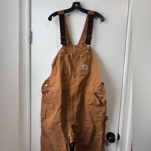 Vintage 90s Carhartt Tan Worker Cargo Double Knee Overalls 42 X 34