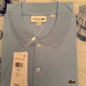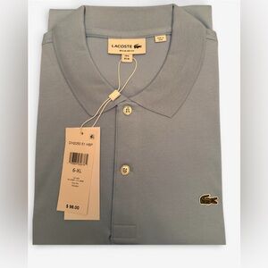 Classic Lacoste polo in light blue. Features iconic crocodile logo. Ideal for casual wear.
