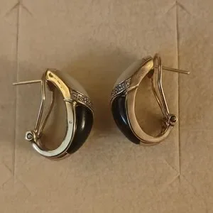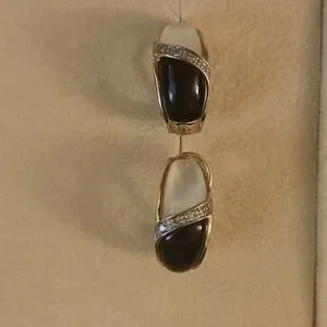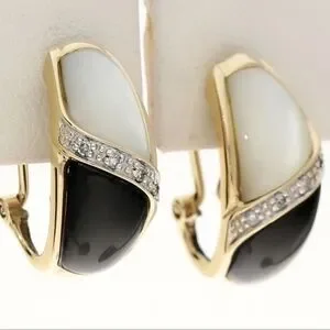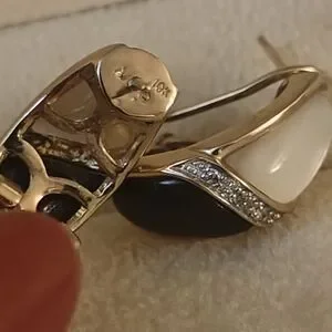 10k Gold Onyx And Mother Of Pearl Vintage Earrings