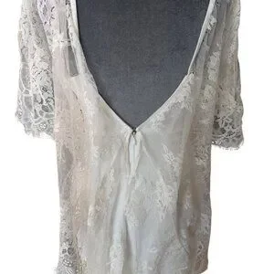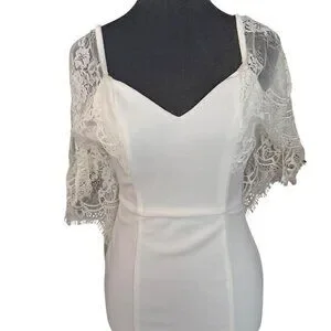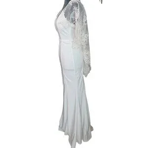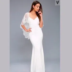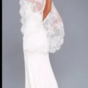 Lulus White Lace Overlay Bridal Gown With V-Back & Flutter Sleeves