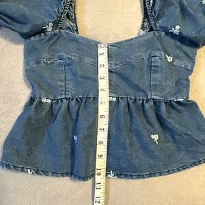 Sim & Sam Denim Puff Sleeve Top Medium Crop Boho Babydoll Western Festival Y2K