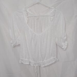 Super cute Free People Top! Can be cinched to a crop or mid length shirt. Peasant, boho style. Excellent condition no flaws! Ships next day any questions will be happy to help!