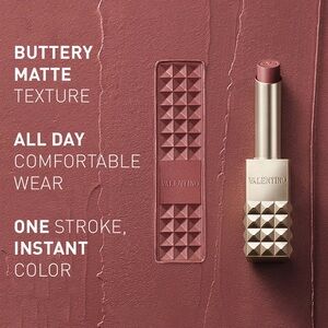 Experience the elegance of Valentino with this lipstick trio. This iconic trio featuring three full-size Spike Valentino Buttery Matte lipsticks.