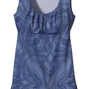 his Patagonia® Worn Wear Bandha Top in Raja: Railroad Blue is a versatile, travel-ready piece made for movement and sustainability. Designed with a flattering scoop neck, ruched front, and stretch jersey fabric, this top is lightweight, breathable, and easy to pack. A comfortable pick for yoga, hiking, travel, or everyday wear.