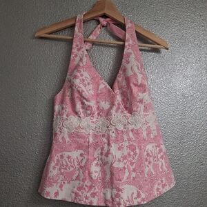 Lilly Pulitzer Run For Roses White Label Halter Top Size 10