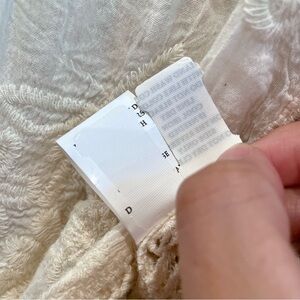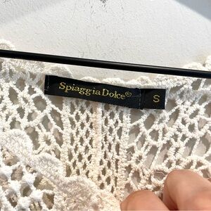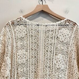 Spiaggia Dolce 3/4 Sleeve Semi-Sheer Crochet Tie Front Top in Cream. Floral geometric embroidery. Pre-owned in excellent condition, size small.
