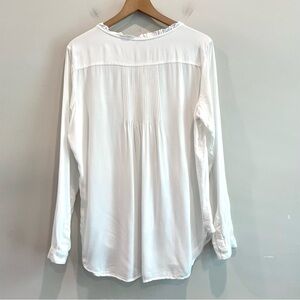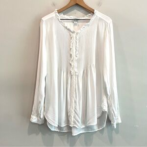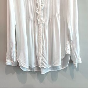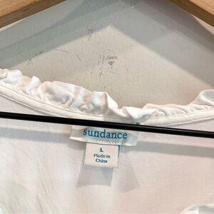 Sundance Long Sleeve 1/2 Button Pleated Ruffle Front Top in Off White. Lightweight 100% Rayon. Pre-owned in excellent condition - size large.