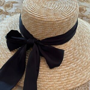 BCBG Straw Hat with Black Bow