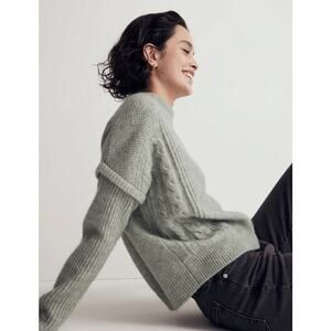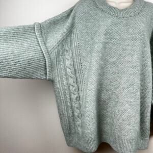 Madewell Cable Havener Pullover Sweater Wool Alpaca Cable Knit Sage 3X Boxy