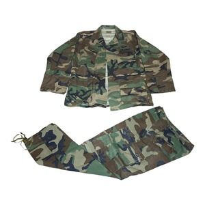Vintage 1970s US Army Woodland Camo BDU Jacket Pants Set Mens USGI ECWCS -SMALL