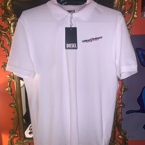 Classic white polo with embroidered logo. Short sleeves. Comfortable fit.