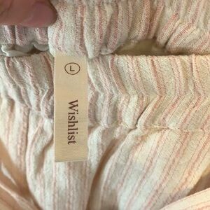 Wishlist size large extra comfy linen pants. Elastic waist. Sort of a cream color with tiny mauve stripes. With pockets.