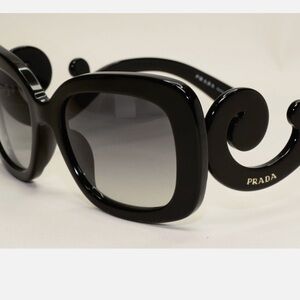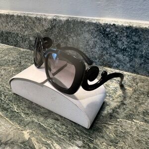 Elegant sunglasses with distinctive swirl arms. Sleek and modern design.
