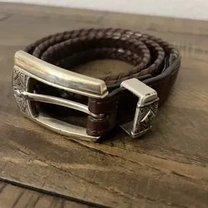 BRIGHTON Brown Leather Braided Belt Q2108 Silver Buckle & Conchos Size S/28