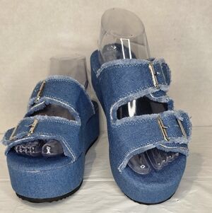 Summer Buckle Strap Denim Slip on Wedge Sandals, Women's Size 38/7.5US