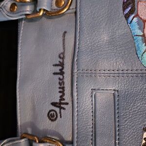 Blue Hand-Painted Anuschka Turtle Design Women's Bag