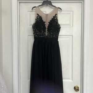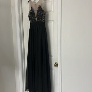 A-Line/Princess Mesh Top Floor-Length Chiffon Prom Bridal Dress w/ Leg Slit