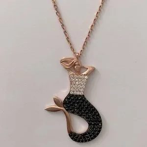 Mermaid 925 silver necklace black 14k rose gold plated