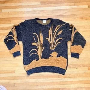 🌾 Vintage 90s Abstract Wheat Print Knit Sweater