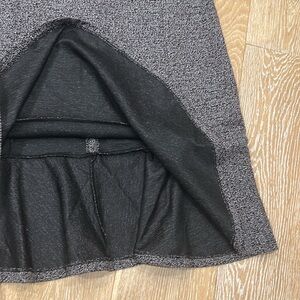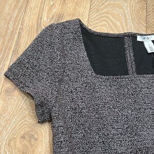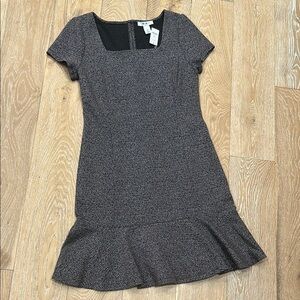 NWT WHBM dress with a square neck and ruffle hem. Fabric looks like tweed but is lighter weight in a black, brown and subtle reddish hint. Excellent new condition!