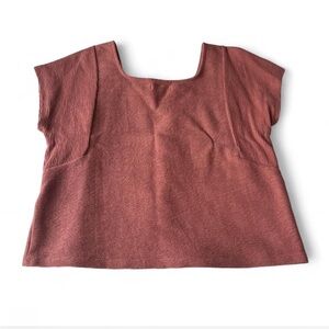 Textured, ribbed knit fabric, square neckline, and short sleeves