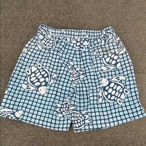 Peter Millar Swim Trunks Mens Medium Shorts Bottoms Blue Turtle Drawstring