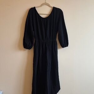This chic black cotton dress features long sleeves and a flattering silhouette, perfect for any occasion. Size small but would fit a medium nicely.