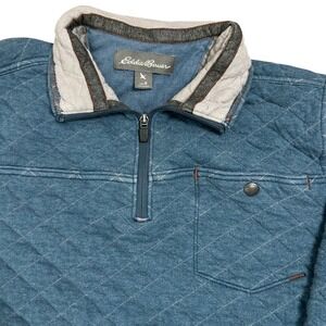 Eddie Bauer Men's Quilted Quarter-Zip Sz-M Blue Cotton Preppy Casual Pullover