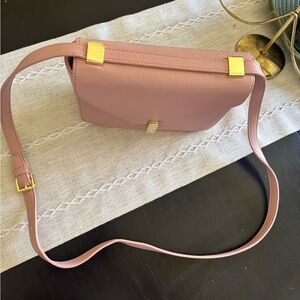 Elegant pink vegan leather crossbody bag with a sleek design. Perfect for any occasion. Like new.