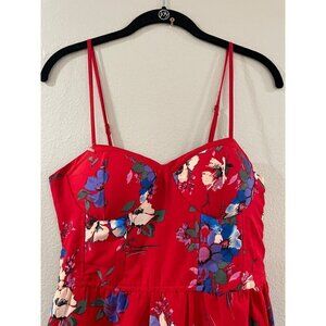 BAND OF GYPSIE WOMENS MAXI RED FLORAL RED DRESS BUSTIER SUMMER SLEEVELESS SIZE S