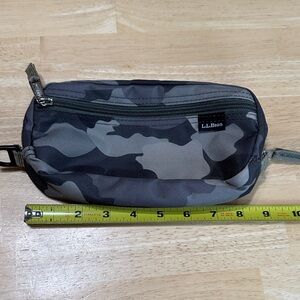 Compact and stylish toiletry bag. Camouflage pattern with durable material. Ideal for travel essentials.