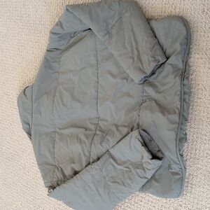 Eco-friendly jacket with soft fabric. Ideal for cool weather. Worn Vuori Canyon Insulated Jacket in the color Pistachio. Size S.