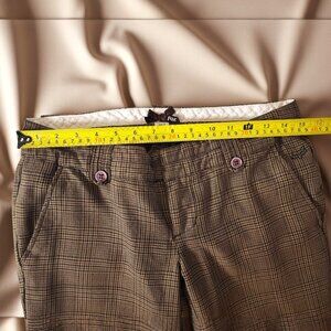 Fox Brown Check Pants Size 5 – Y2K Plaid Trousers w/ Button Detail