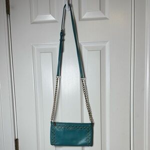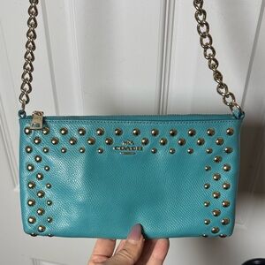 Coach Studded Crossbody Bag in Teal Leather with Gold Chain Strap 💎