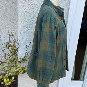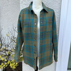 Duluth Trading Co. Green/Blue Plaid Flannel Jacket Women's Size M