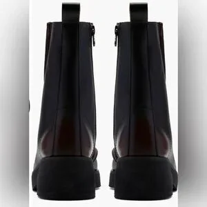 A crepe sole provides a contemporary finish for a smooth leather bootie that's