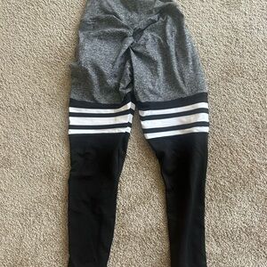 Comfortable and stylish leggings in gray and black with white stripes. Squat proof. Worn only twice.